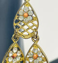 - Delicate gold lattice work with crystal embellishment